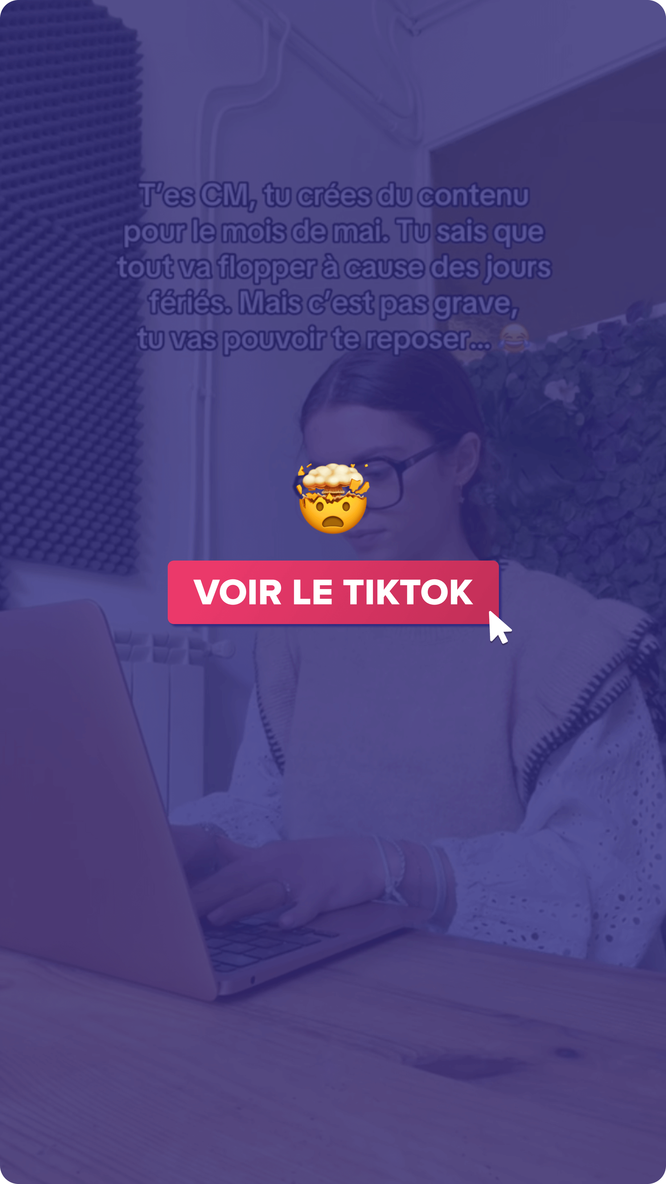 POV : T’es CM, tu crées du contenu pour le mois de mai. Tu sais que tout va flopper à cause des jours fériés. Mais c’est pas grave, tu vas pouvoir te reposer…