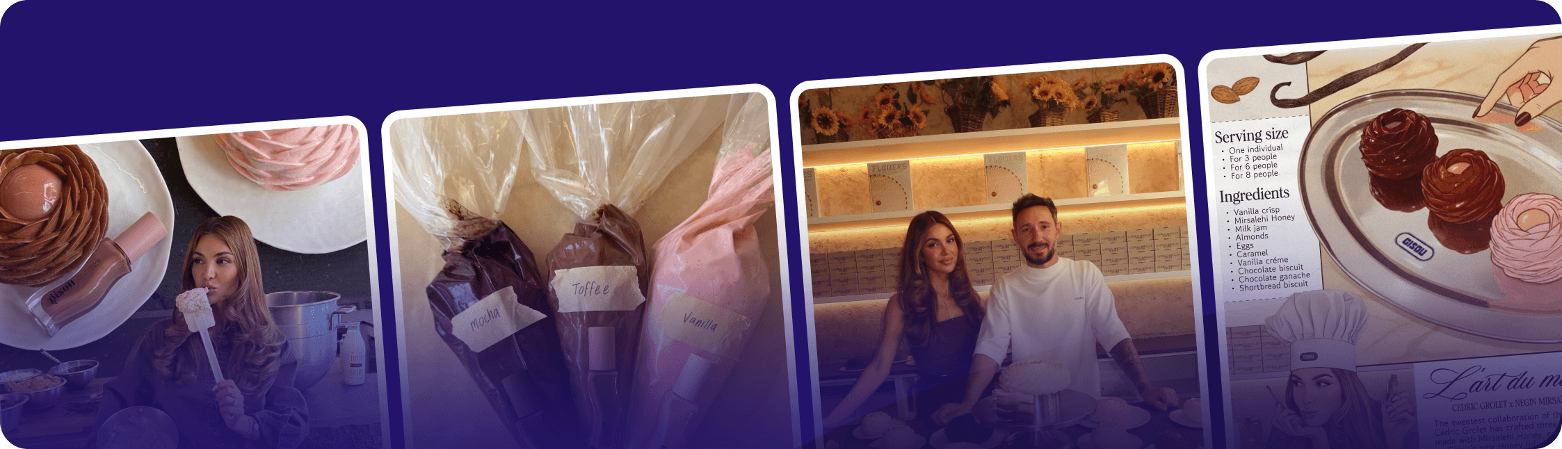 Exemple : la collaboration fusionnant avec succès le miel des cosmétiques Gisou, aux pâtisseries de Cédric Grolet, créant ainsi un événement viral sur les réseaux.