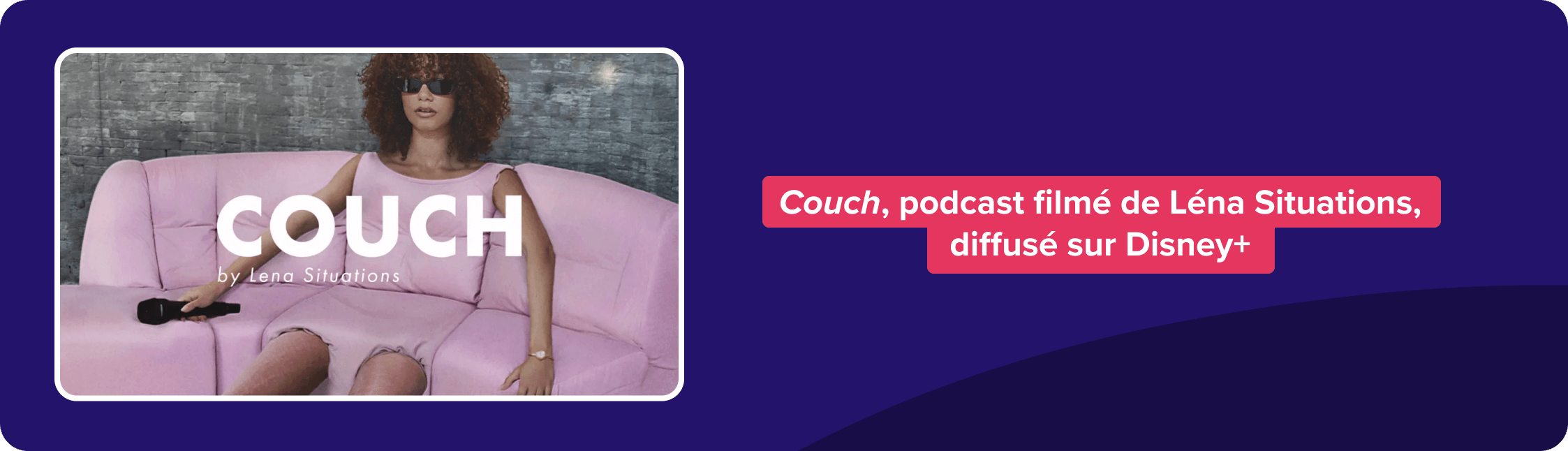 On veut comprendre, apprendre et suivre une histoire au-delà de quelques secondes. A l’aide de superproductions, les aventures des créateurs deviennent des expériences embarquées pour leurs audiences comme le podcast filmé de Léna Situations, diffusé sur Disney+ nommé Couch.