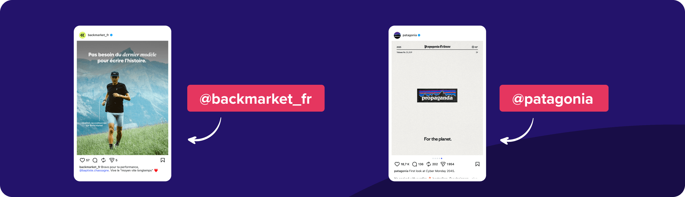 Les contenus qui performeront seront ceux qui montreront des preuves concrètes comme des rapports chiffrés ou des actions menées tout en évitant le greenwashing comme le font déjà les comptes Instagram de @backmarket_fr et @patagonia.